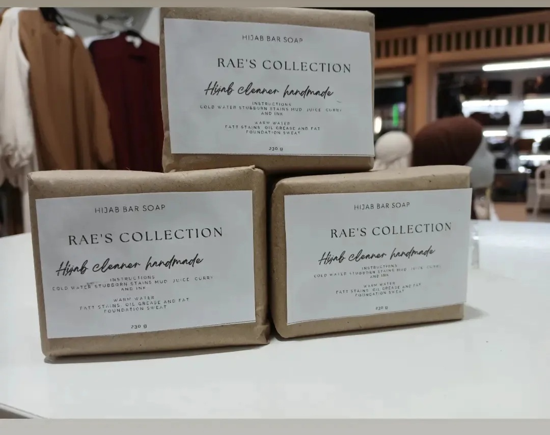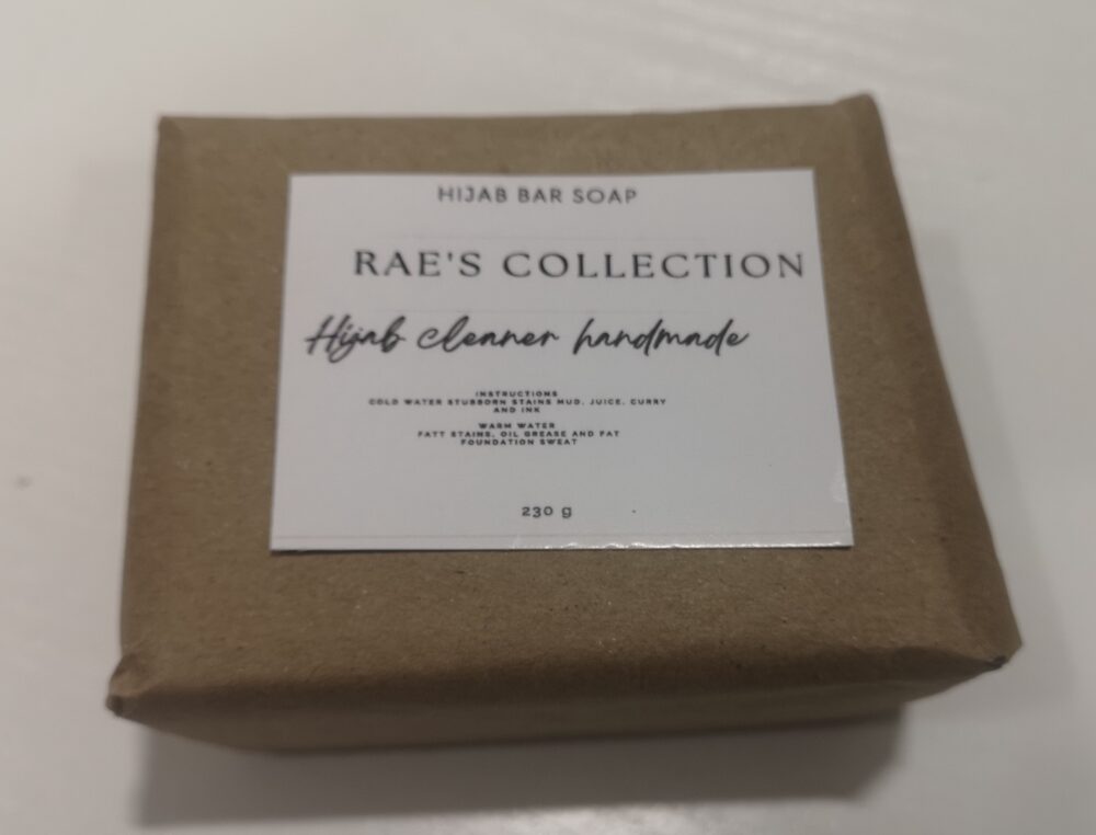 Wet your hijab grease the stain with the Hijab soap and leave it over night and rinse wall.